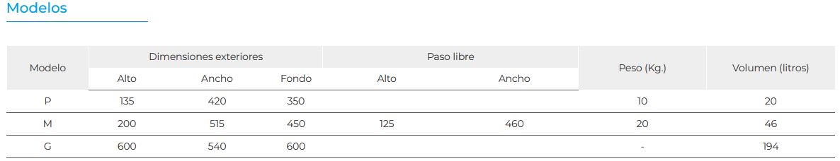 - Construido en chapa de acero de 2 mm de espesor.