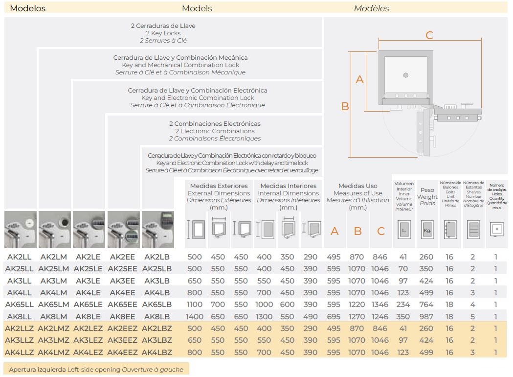 Serie V, cajas fuertes de grado V según la norma UNE EN-1143-1:2019. Esta clasificación corresponde a un nivel elevado de resistencia, lo que las hace ideales para entornos de riesgo, como bancos, joyerías, empresas de seguridad y establecimientos con grandes volúmenes de efectivo o bienes de alto valor.