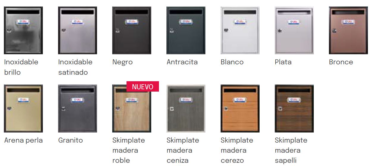 ceniza. Puertas en acero pintado, skimplate y acero inoxidable (calidad AISI 304).