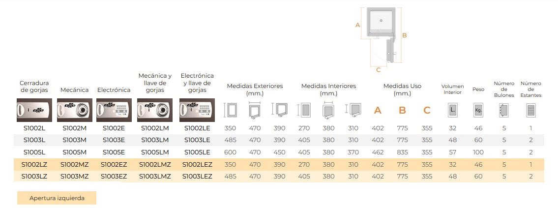Posibilidad de 5 tipos de versiones distintas de cierre. La versión electrónica va equipada con el sistema Ocluc.